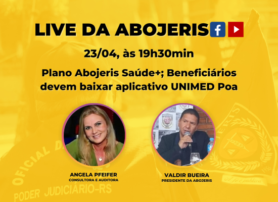 Live da Abojeris • 23/04 – Plano Abojeris Saúde+; Beneficiários devem baixar aplicativo UNIMED Poa