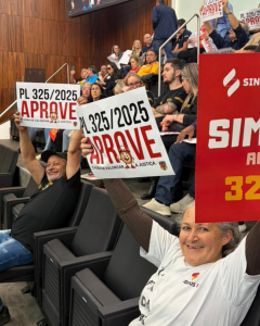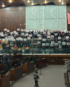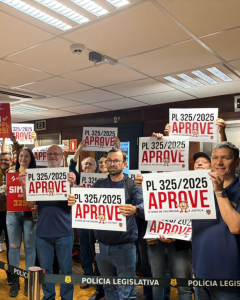 Na tarde desta terça-feira (28), o PL 325/2025 foi aprovado no plenário da Assembleia Legislativa, com 48 votos favoráveis e apenas um contrário. Durante a apreciação da matéria, mais de 325 Oficiais e Oficialas de Justiça de todas as regiões do estado acompanharam a votação diretamente das galerias do plenário, ocupando mais de 95% do espaço.